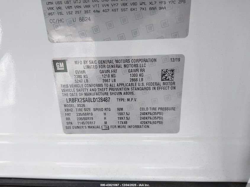 2020 BUICK ENVISION 2020 року Бензин, 2.5, Полный привод, vin - LRBFX2SA8LD128487 из США