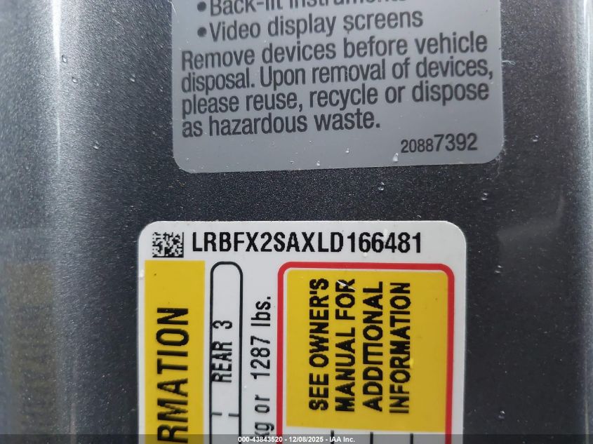 2020 BUICK ENVISION 2020 року Бензин, 2.5, Полный привод, vin - LRBFX2SAXLD166481 из США
