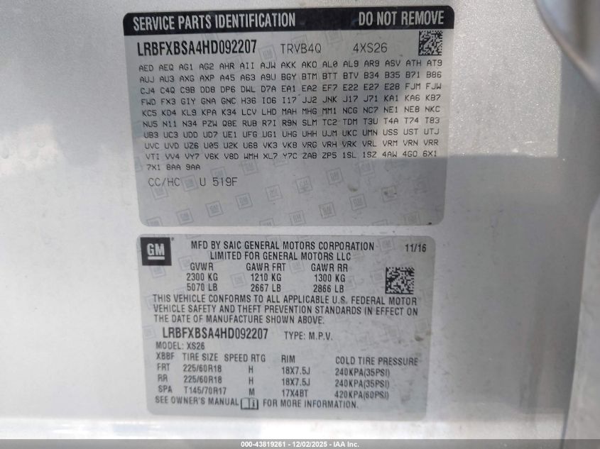 2017 BUICK ENVISION 2017 року Бензин, 2.5, Передний привод, vin - LRBFXBSA4HD092207 из США