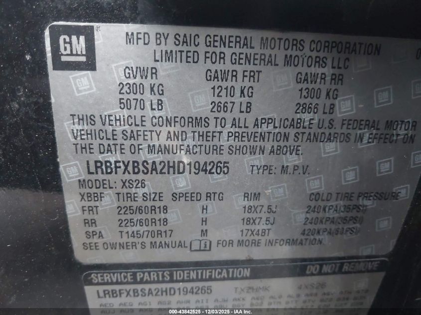 2017 BUICK ENVISION 2017 року Бензин, 2.5, Передний привод, vin - LRBFXBSA2HD194265 из США