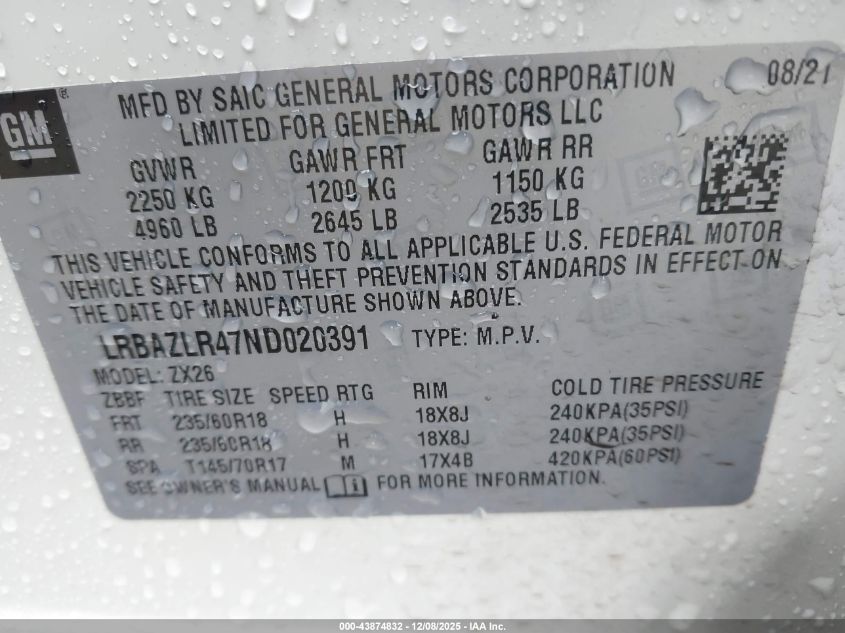 2022 BUICK ENVISION 2022 року Бензин, 2.0, Передний привод, vin - LRBAZLR47ND020391 из США