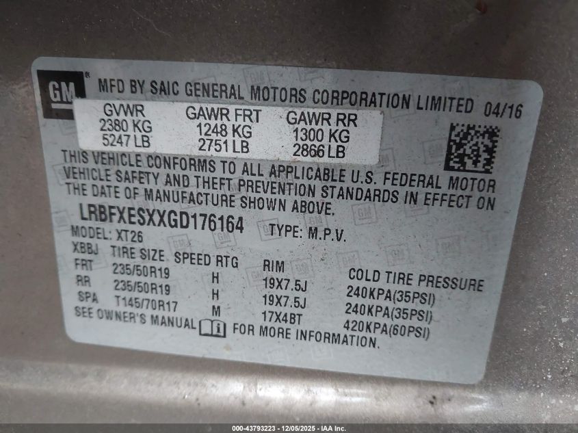 2016 BUICK ENVISION 2016 року Бензин, 2.0, Полный привод, vin - LRBFXESXXGD176164 из США