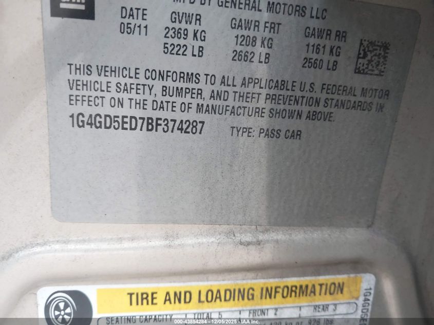 2011 BUICK LACROSSE 2011 року Бензин, 3.6, Полный привод, vin - 1G4GD5ED7BF374287 из США