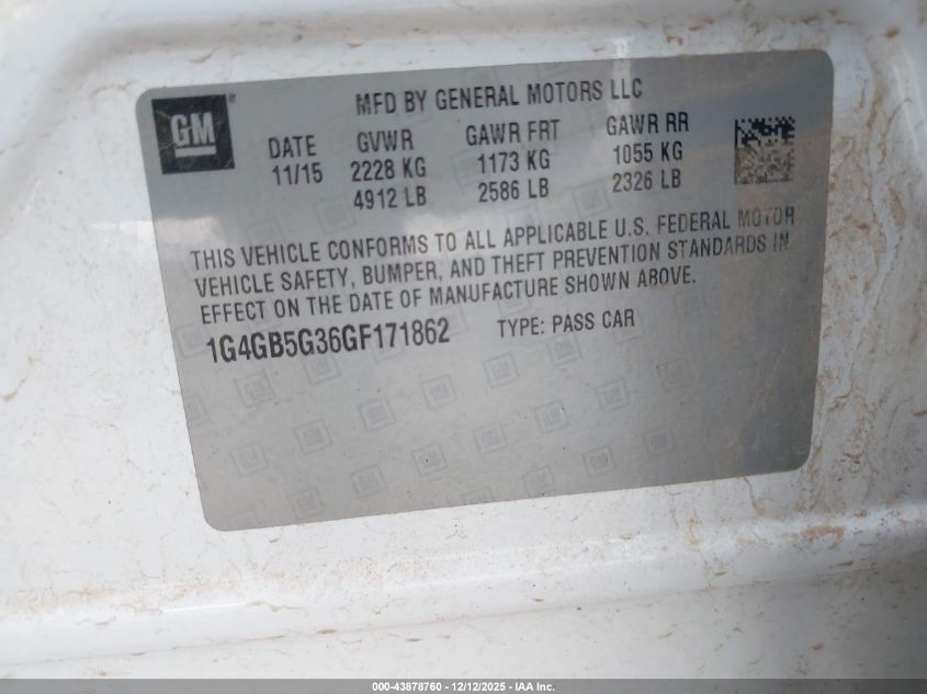 2016 BUICK LACROSSE 2016 року Бензин, 3.6, Передний привод, vin - 1G4GB5G36GF171862 из США