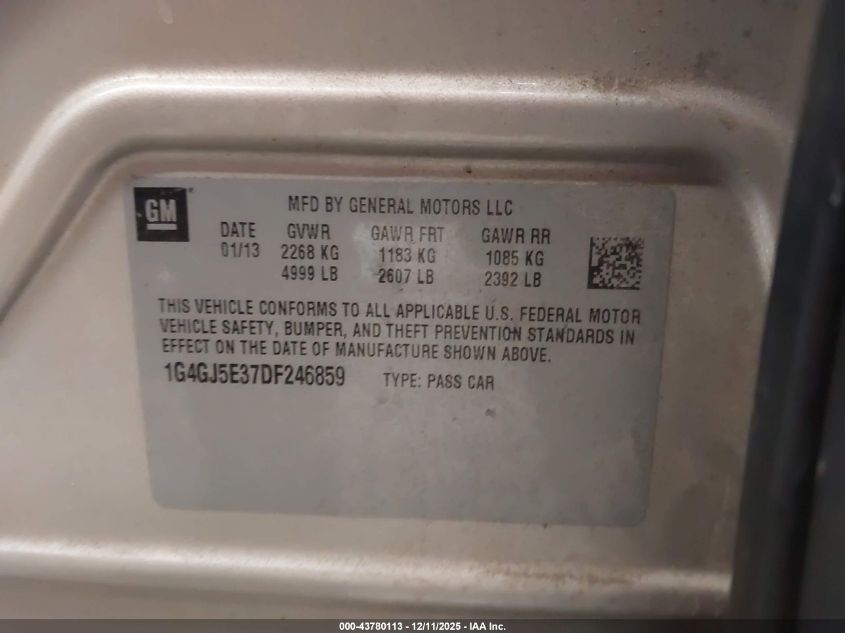 2013 BUICK LACROSSE 2013 року Бензин, 3.6, Передний привод, vin - 1G4GJ5E37DF246859 из США