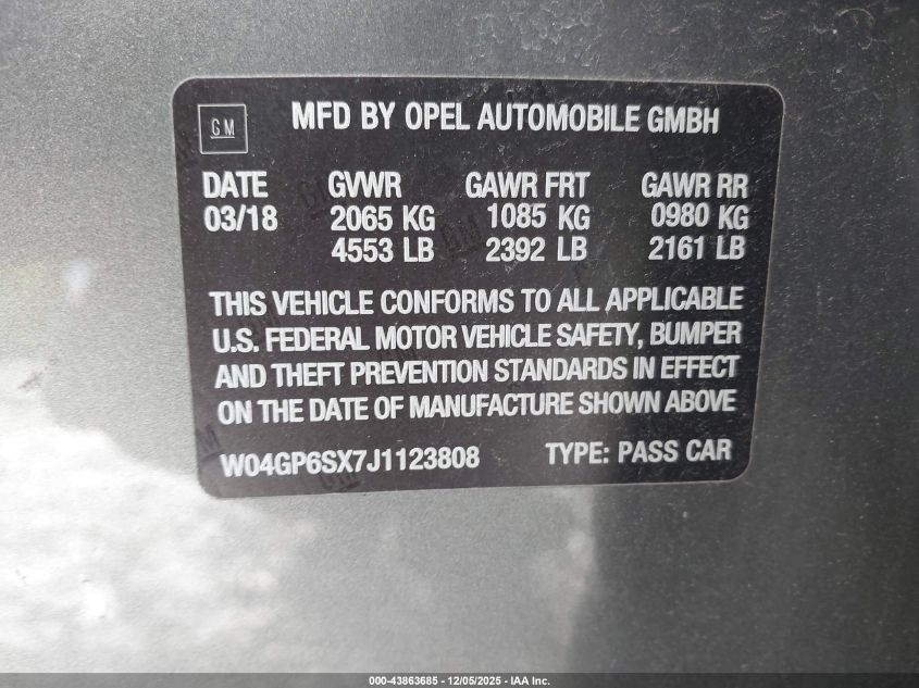 2018 BUICK REGAL 2018 року Бензин, 2.0, Передний привод, vin - W04GP6SX7J1123808 из США