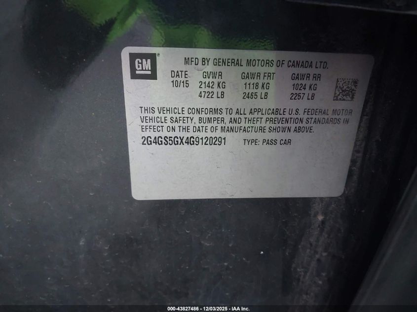 Цвет СерыйЦилиндры 4Привод Передний приводVIN 2G4GS5GX4G9120291Состояние СтационарноПовреждения Передняя леваяДата аукциона 2025-12-12 AutoRIA