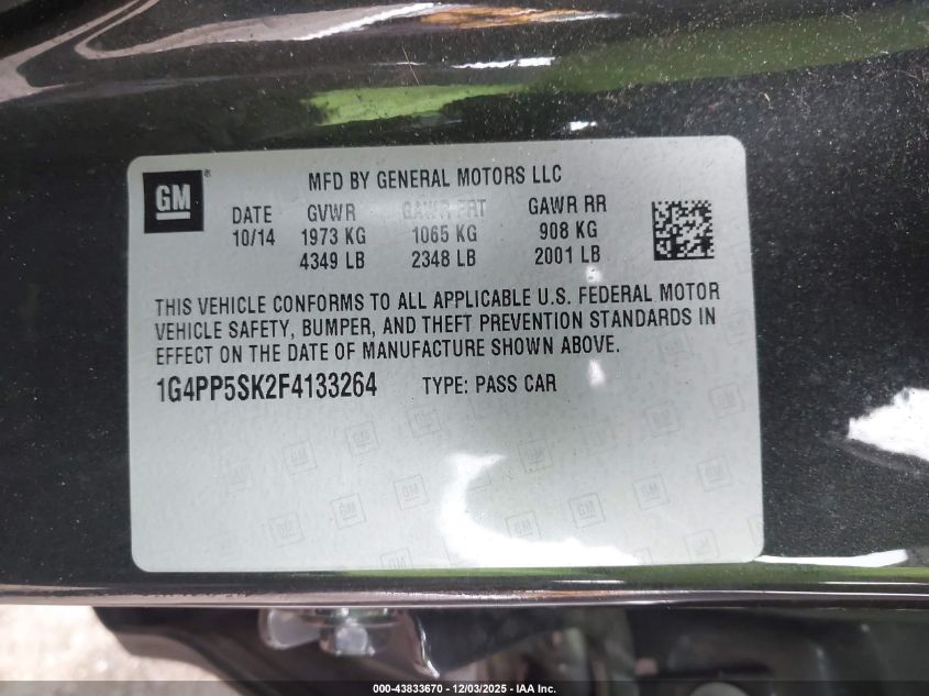 2015 BUICK VERANO 2015 року Бензин, 2.4, Передний привод, vin - 1G4PP5SK2F4133264 из США