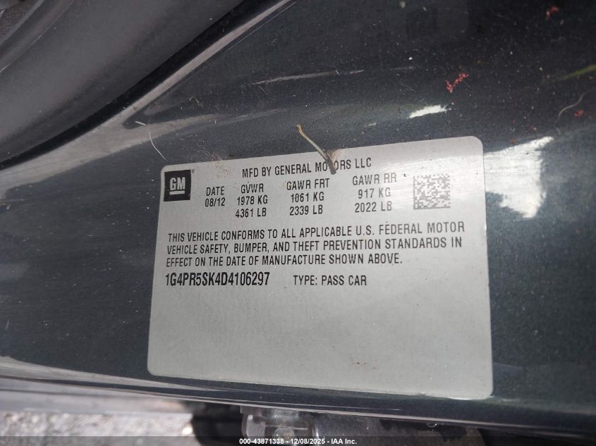 2013 BUICK VERANO 2013 року Бензин, 2.4, Передний привод, vin - 1G4PR5SK4D4106297 из США
