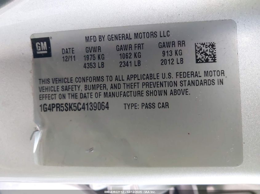 2012 BUICK VERANO 2012 року Бензин, 2.4, Передний привод, vin - 1G4PR5SK5C4139064 из США