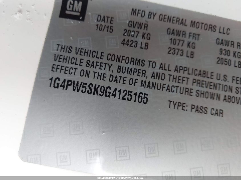 Цвет БелыйЦилиндры 4Привод Передний приводVIN 1G4PW5SK9G4125165Состояние Заводится и едет (проверено)Повреждения Неизвестно AutoRIA