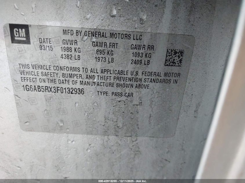 2015 CADILLAC ATS 2015 року Бензин, 2.0, Задний привод, vin - 1G6AB5RX3F0132936 из США