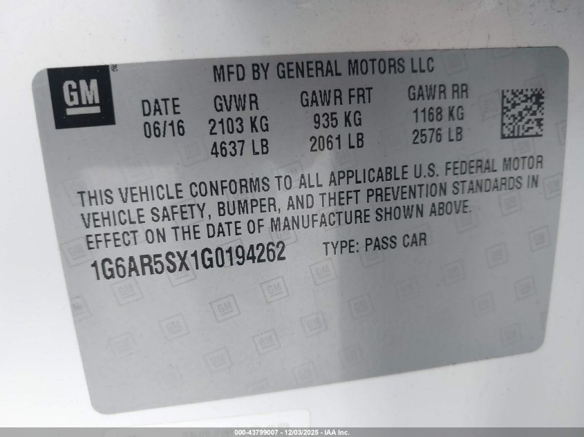 Цвет БелыйЦилиндры 4Привод Задний приводVIN 1G6AR5SX1G0194262Состояние СтационарноПовреждения Передняя правая AutoRIA