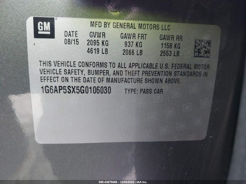 Цвет СерыйЦилиндры 4Привод Задний приводVIN 1G6AP5SX5G0106030Состояние ЗаводитсяПовреждения Неизвестно AutoRIA