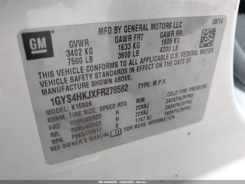 2015 CADILLAC ESCALADE 2015 року Бензин, 6.2, Полный привод, vin - 1GYS4HKJXFR278582 из США