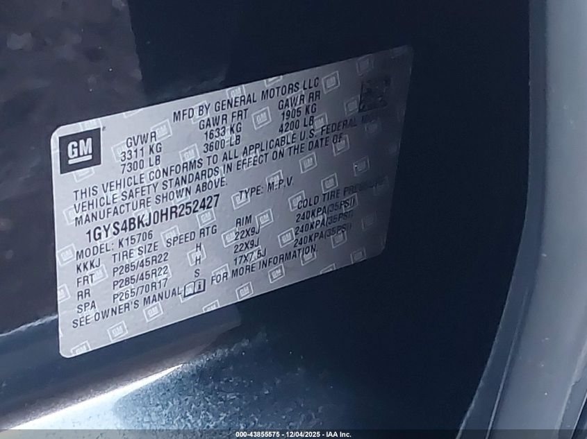 2017 CADILLAC ESCALADE 2017 року Бензин, 6.2, Полный привод, vin - 1GYS4BKJ0HR252427 из США