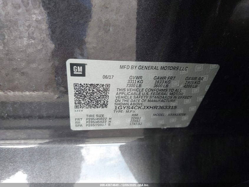 2017 CADILLAC ESCALADE 2017 року Бензин, 6.2, Полный привод, vin - 1GYS4CKJXHR363315 из США