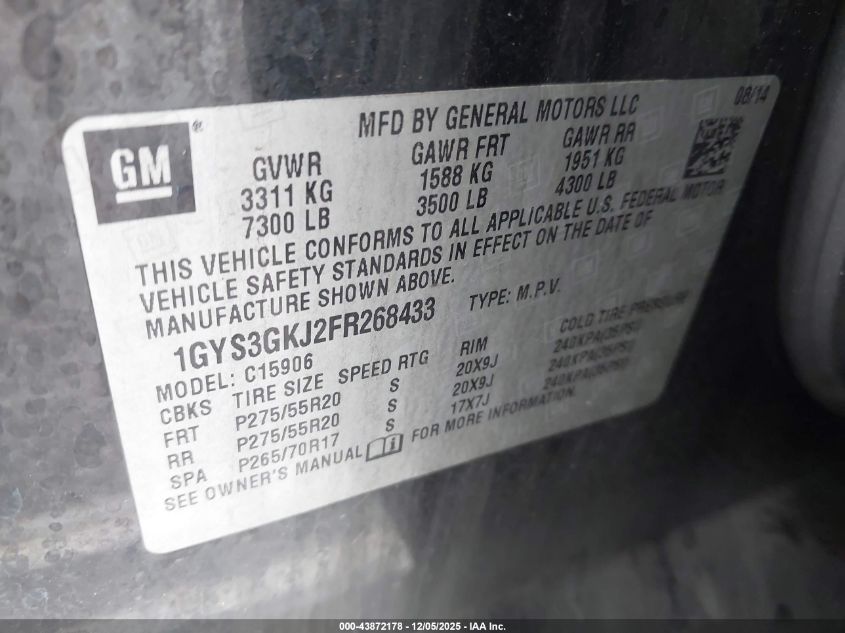 2015 CADILLAC ESCALADE 2015 року Бензин, 6.2, , vin - 1GYS3GKJ2FR268433 из США