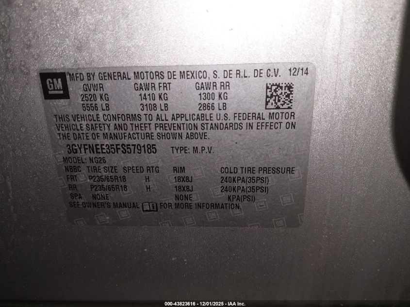 2015 CADILLAC SRX 2015 року Бензин, 3.6, Полный привод, vin - 3GYFNEE35FS579185 из США