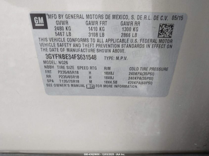 2015 CADILLAC SRX 2015 року Бензин, 3.6, Передний привод, vin - 3GYFNBE34FS631548 из США