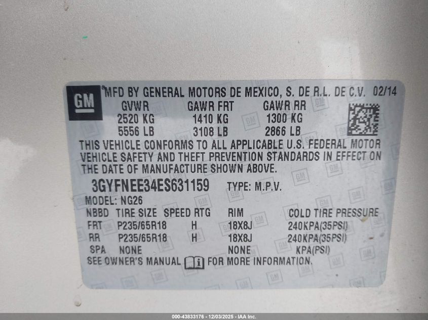 2014 CADILLAC SRX 2014 року Бензин, 3.6, Полный привод, vin - 3GYFNEE34ES631159 из США