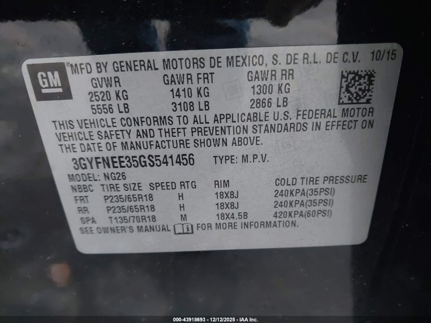 2016 CADILLAC SRX 2016 року Бензин, 3.6, Полный привод, vin - 3GYFNEE35GS541456 из США