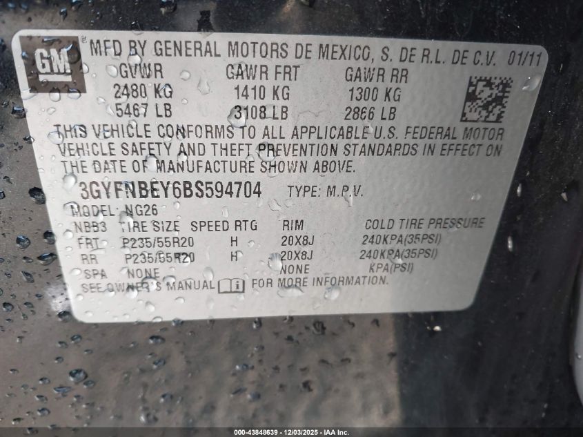 Цвет ЧерныйЦилиндры 6Привод Передний приводVIN 3GYFNBEY6BS594704Состояние СтационарноПовреждения Передняя правая AutoRIA