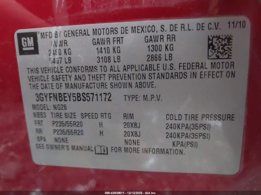 Цвет КрасныйЦилиндры 6Привод Передний приводVIN 3GYFNBEY5BS571172Состояние СтационарноПовреждения Левая сторона AutoRIA