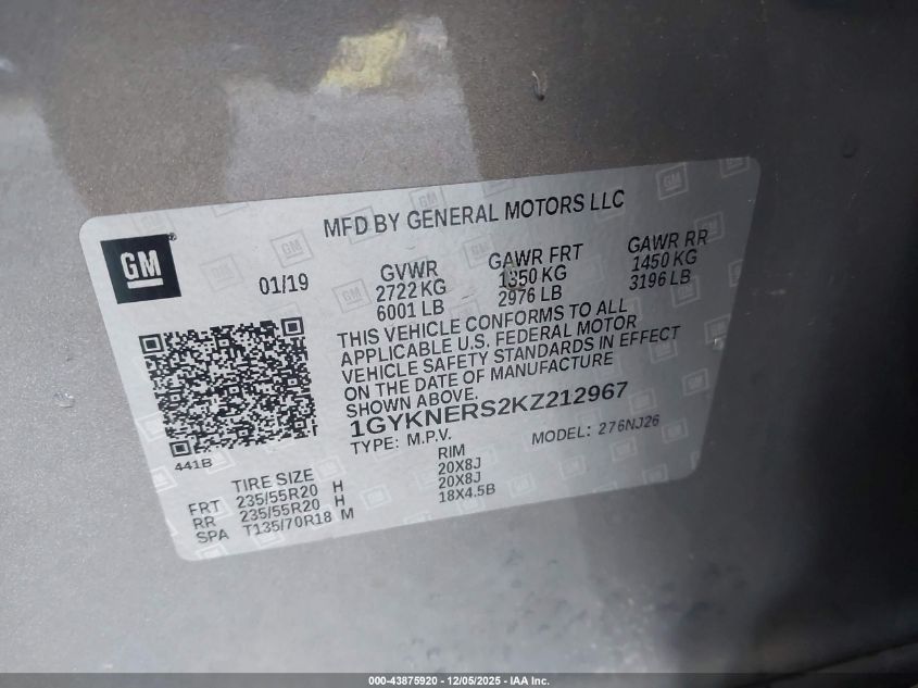 2019 CADILLAC XT5 2019 року Бензин, 3.6, Передний привод, vin - 1GYKNERS2KZ212967 из США