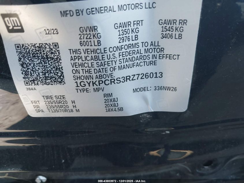 2024 CADILLAC XT6 2024 року Бензин, 3.6, Передний привод, vin - 1GYKPCRS3RZ726013 из США