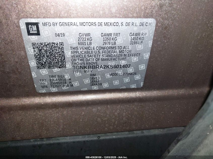 2019 CHEVROLET BLAZER 2019 року Бензин, 2.5, Передний привод, vin - 3GNKBBRA2KS601407 из США