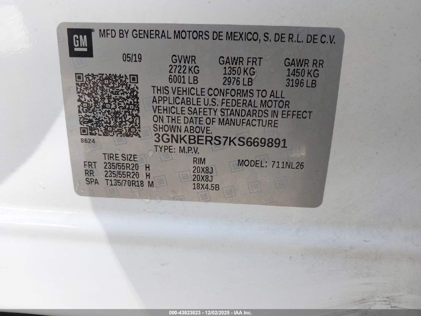 Цвет БелыйЦилиндры 6Привод Передний приводVIN 3GNKBERS7KS669891Состояние Заводится и едет (проверено)Повреждения Передняя или задняя AutoRIA
