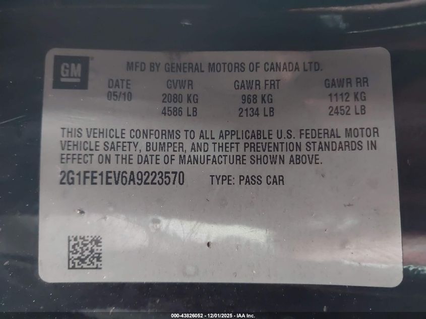 Цвет ЧерныйЦилиндры 6Привод Задний приводVIN 2G1FE1EV6A9223570Состояние Заводится и едет (проверено)Повреждения Передняя или задняя AutoRIA