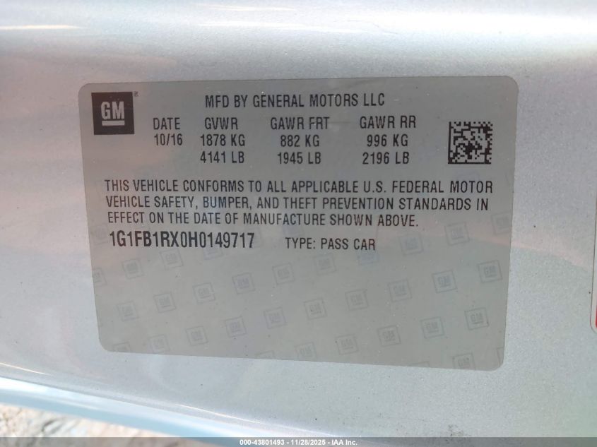 2017 CHEVROLET CAMARO 2017 року Бензин, 2.0, Задний привод, vin - 1G1FB1RX0H0149717 из США