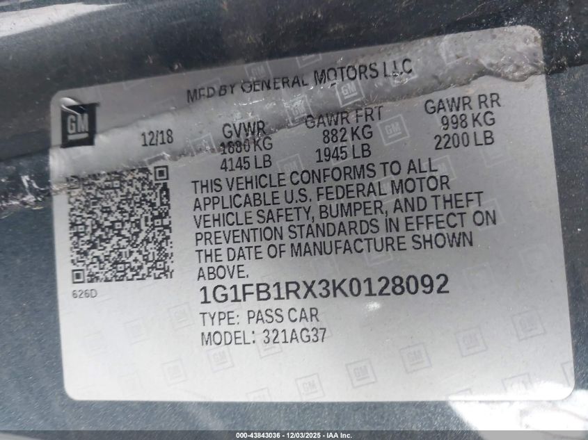 Цвет СерыйЦилиндры 4Привод Задний приводVIN 1G1FB1RX3K0128092Состояние Заводится и едет (проверено)Повреждения Левая сторона AutoRIA