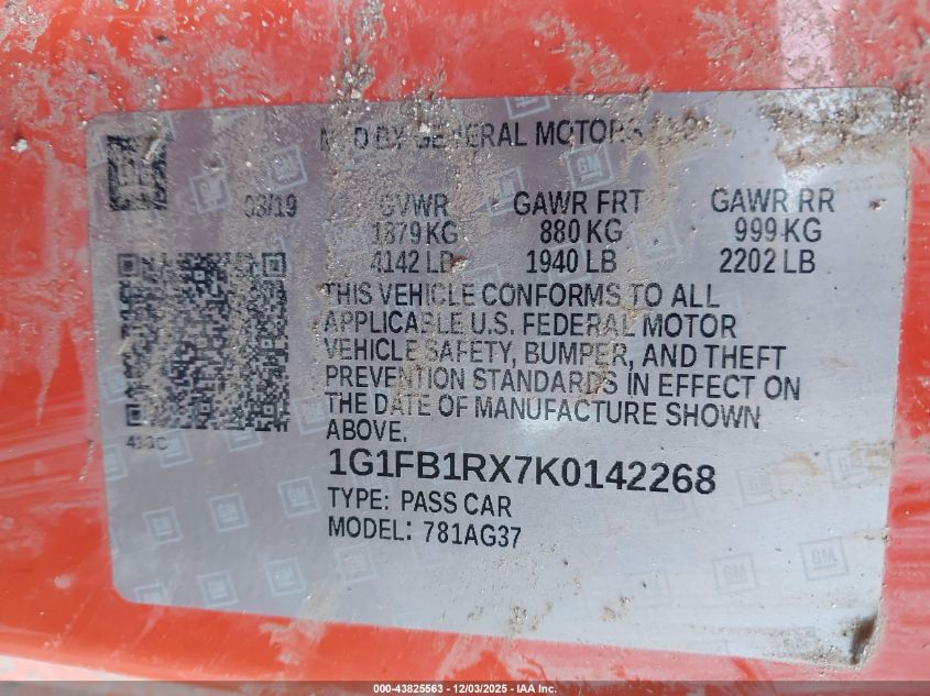 2019 CHEVROLET CAMARO 2019 року Бензин, 2.0, Задний привод, vin - 1G1FB1RX7K0142268 из США