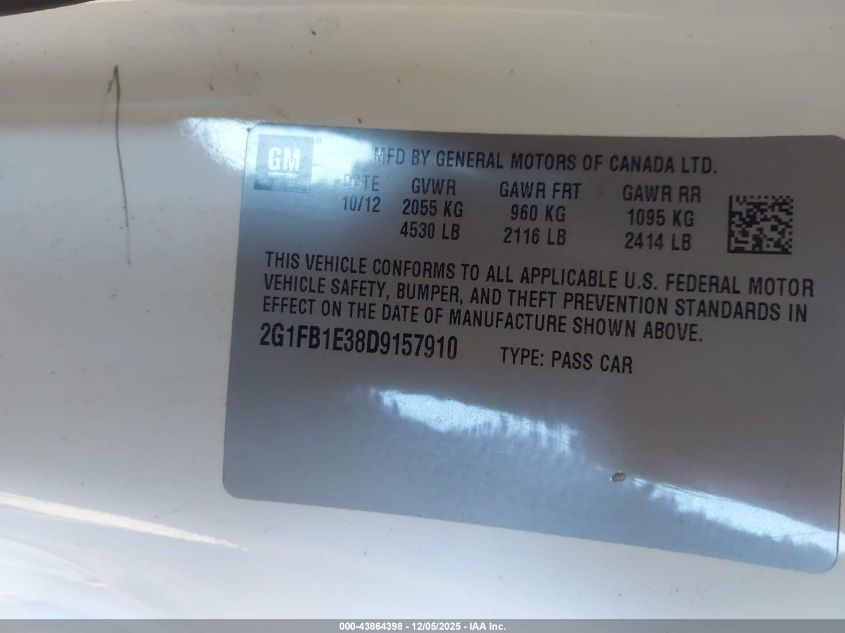 Цвет БелыйЦилиндры 6Привод Задний приводVIN 2G1FB1E38D9157910Состояние Заводится и едет (проверено)Повреждения Передняя или задняя AutoRIA