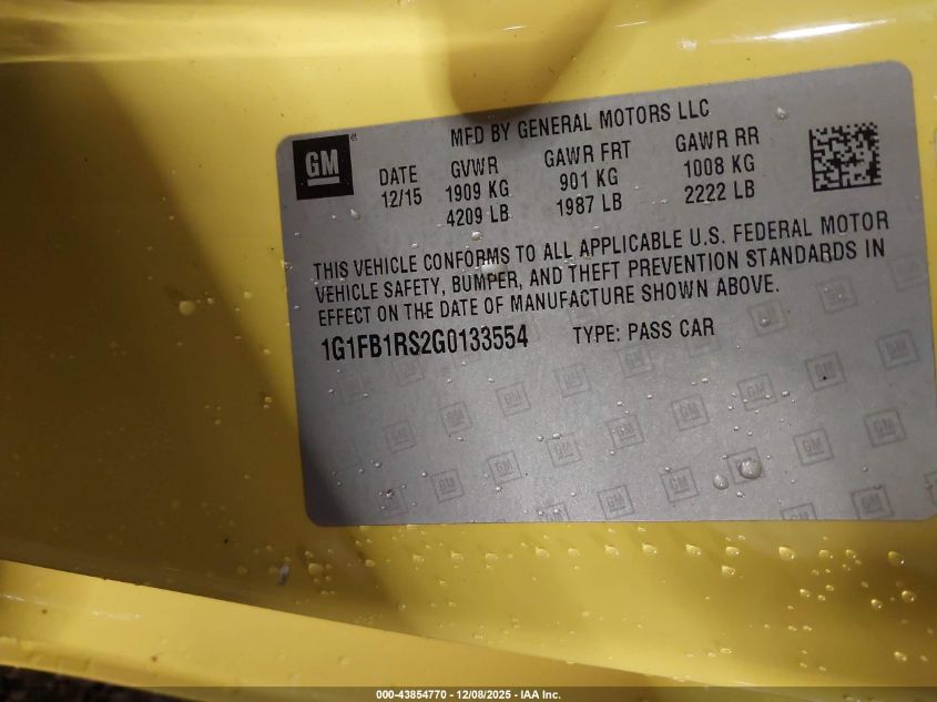 2016 CHEVROLET CAMARO 2016 року Бензин, 3.6, Задний привод, vin - 1G1FB1RS2G0133554 из США