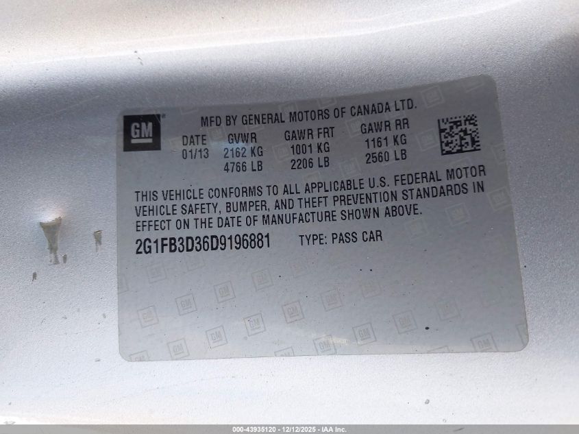 Цвет СеребряныйЦилиндры 6Привод Задний приводVIN 2G1FB3D36D9196881Состояние Заводится и едет (проверено)Повреждения Передняя или задняя AutoRIA