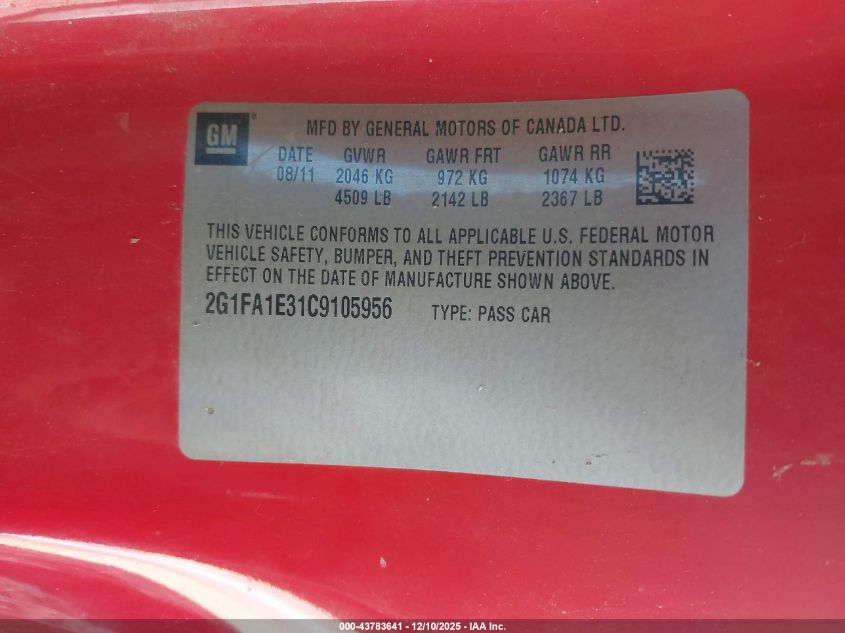 Цвет КрасныйЦилиндры 6Привод Задний приводVIN 2G1FA1E31C9105956Состояние СтационарноПовреждения Передняя или задняя AutoRIA