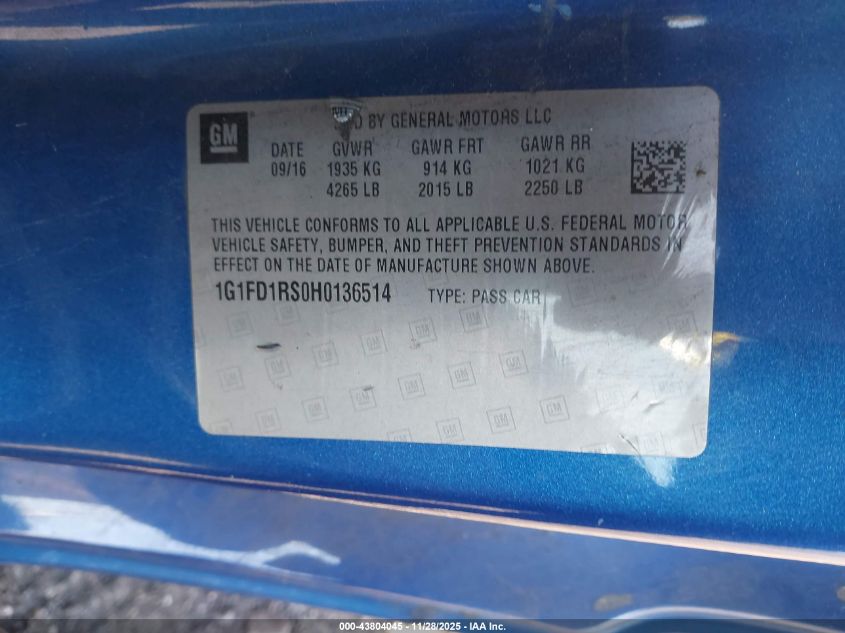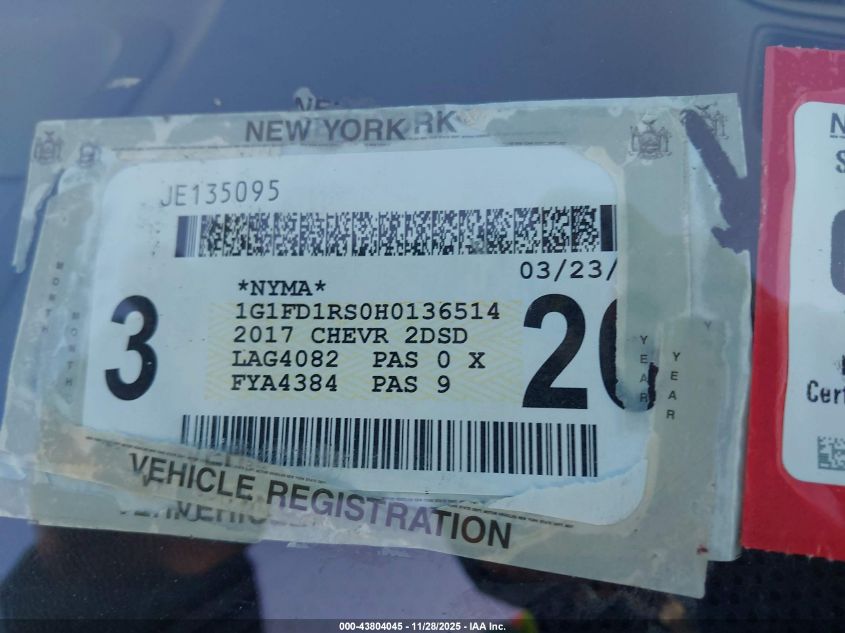 2017 CHEVROLET CAMARO 2017 року Бензин, 3.6, Задний привод, vin - 1G1FD1RS0H0136514 из США