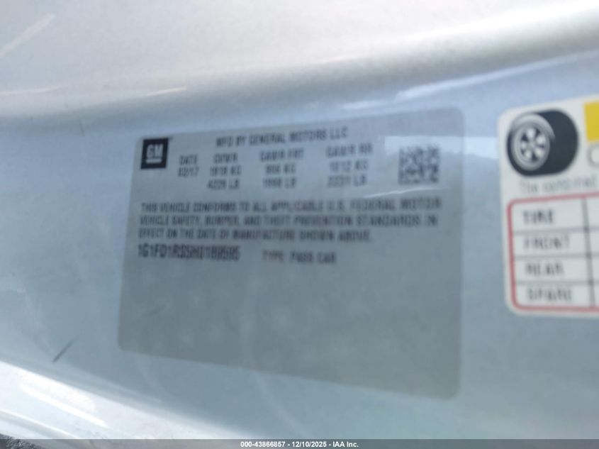 2017 CHEVROLET CAMARO 2017 року Бензин, 3.6, Задний привод, vin - 1G1FD1RS5H0189595 из США