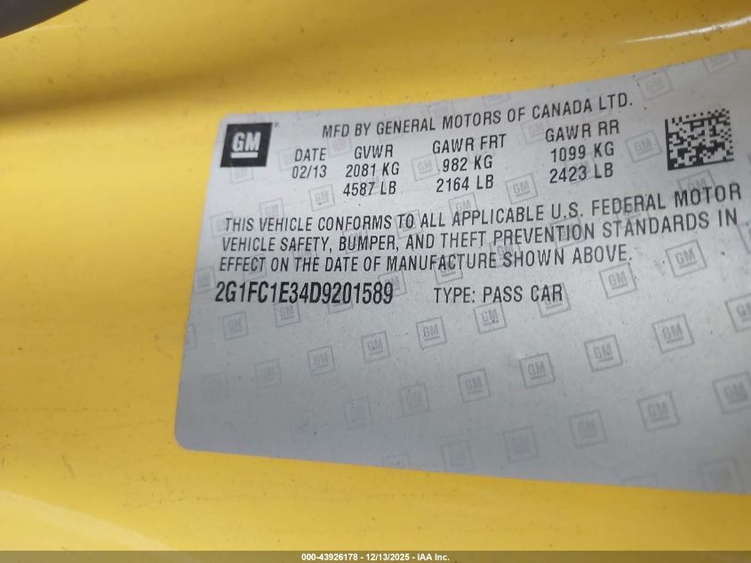 2013 CHEVROLET CAMARO 2013 року Бензин, 3.6, Задний привод, vin - 2G1FC1E34D9201589 из США