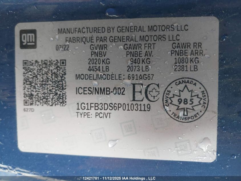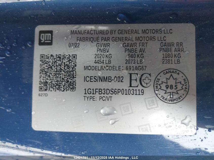 Цвет СинийЦилиндры 6Привод Задний приводVIN 1G1FB3DS6P0103119Состояние СтационарноПовреждения ПередняяДата аукциона 2025-12-09