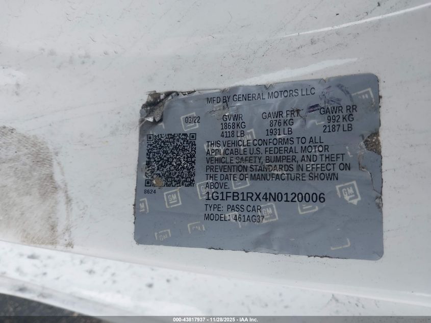 Цвет БелыйЦилиндры 4Привод Задний приводVIN 1G1FB1RX4N0120006Состояние Заводится и едет (проверено)Повреждения Передняя или задняя AutoRIA