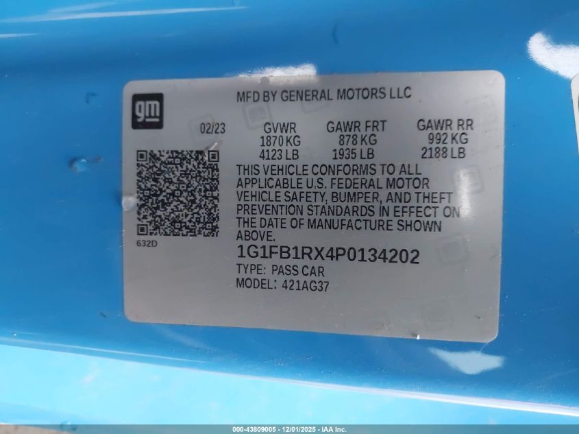 2023 CHEVROLET CAMARO 2023 року Бензин, 2.0, Задний привод, vin - 1G1FB1RX4P0134202 из США