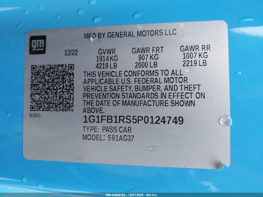2023 CHEVROLET CAMARO 2023 року Бензин, 3.6, Задний привод, vin - 1G1FB1RS5P0124749 из США