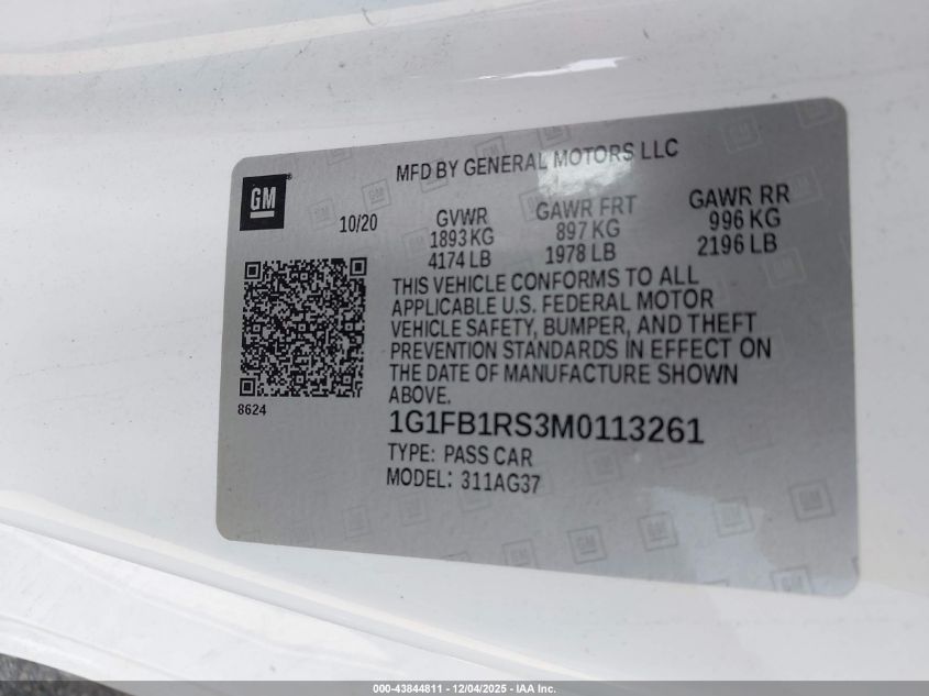 2021 CHEVROLET CAMARO 2021 року Бензин, 3.6, Задний привод, vin - 1G1FB1RS3M0113261 из США