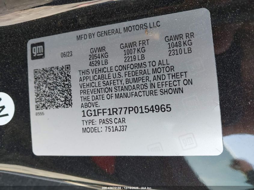 2023 CHEVROLET CAMARO 2023 року Бензин, 6.2, Задний привод, vin - 1G1FF1R77P0154965 из США