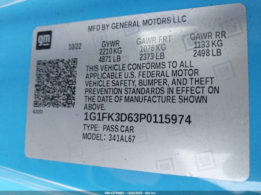 2023 CHEVROLET CAMARO 2023 року Бензин, 6.2, Задний привод, vin - 1G1FK3D63P0115974 из США